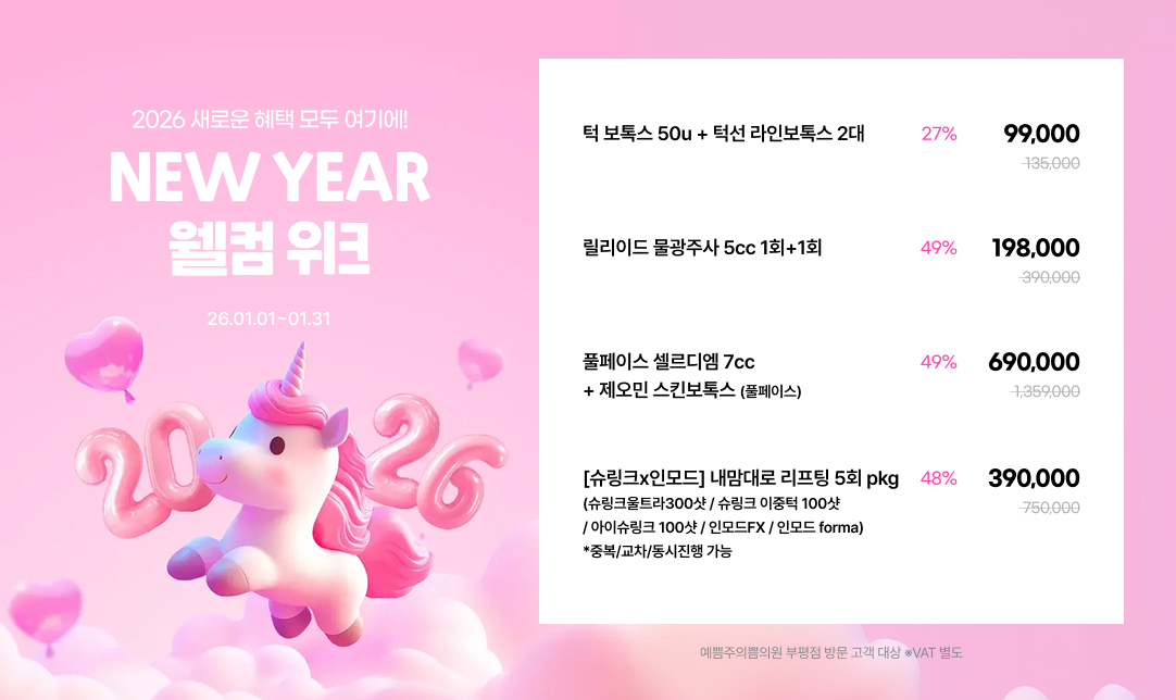 부평역 25번 출구에 위치한 쁨클리닉부평점은 풍부한 경험과 테크닉을 보유하고 있는 의료진이 정품정량을 원칙으로 꼼꼼한 맞춤시술을 진행합니다. 트렌디한 인테리어와 첨단장비를 갖춘 쁨에서 편하게 예뻐지세요